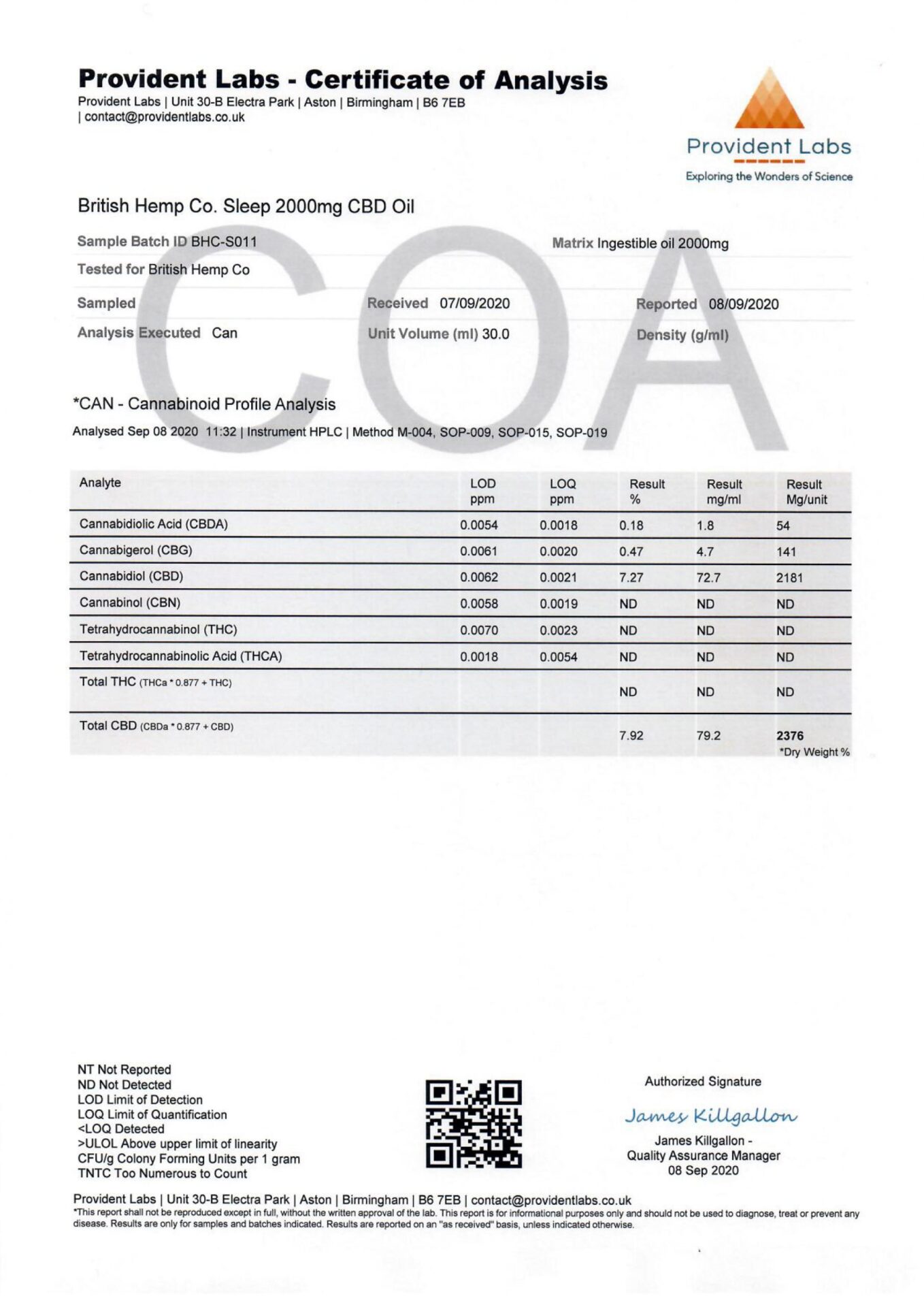 Specification: British Hemp Co – 30ml – 6.7% (with Valerian Root & 5-HTP)