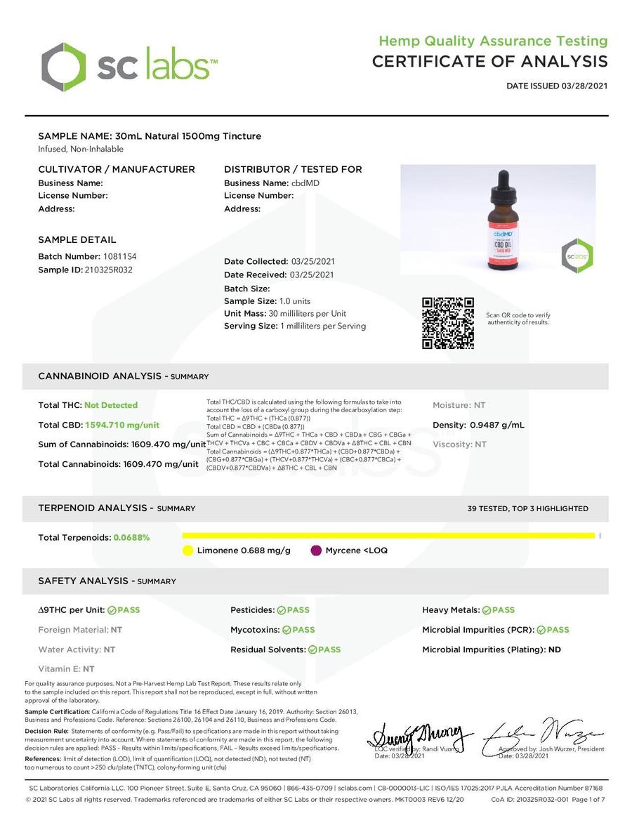 Specification: cbdMD – 30ml – 5% (Broad Spectrum)