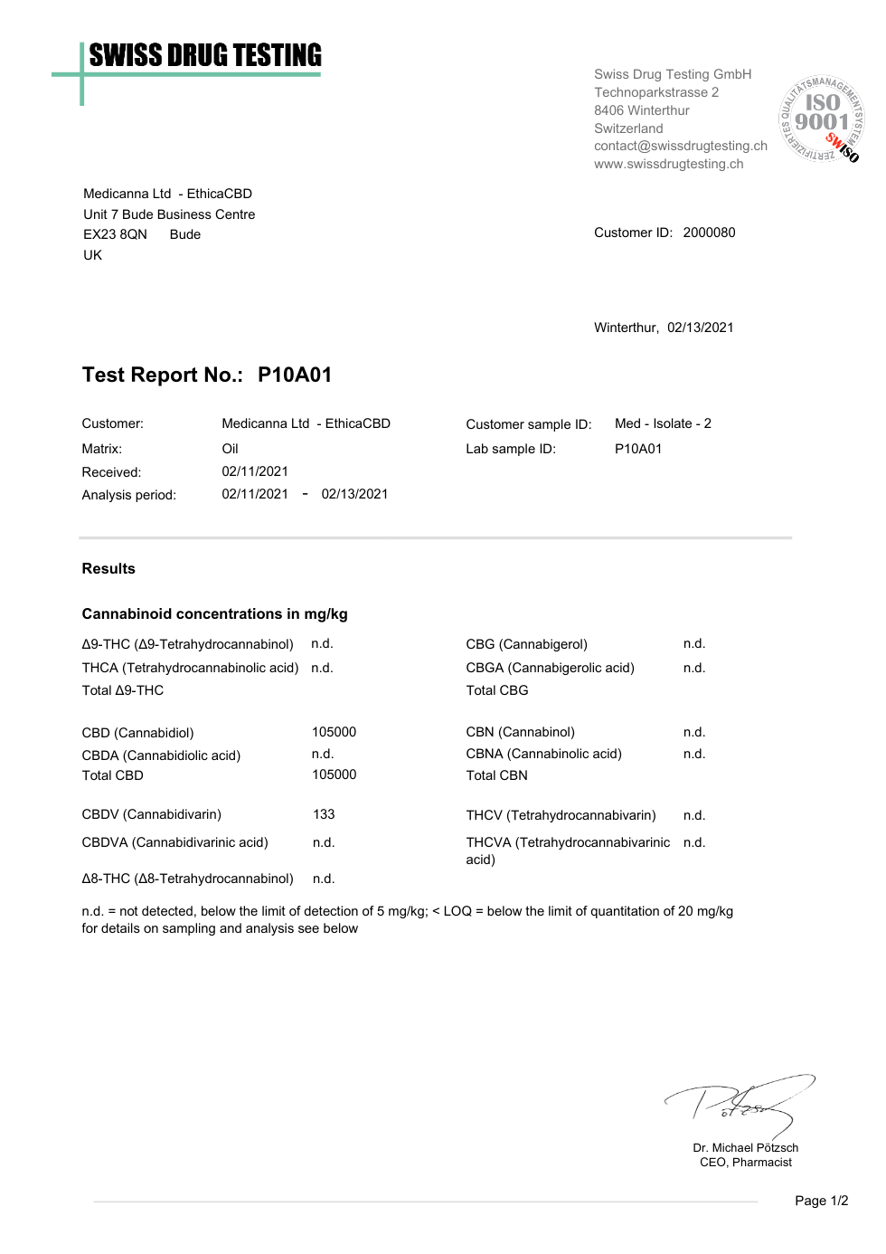 Specification: EthicaCBD – 10ml – 10% (with Vitamin C and Chia Seed oil)